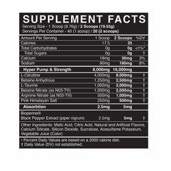 Key Ingredients (per scoop): Citrulline Malate, HydroMax® glycerol, Betaine Anhydrous, L-Norvaline, Agmatine Sulfate, Taurine, Pink Himalayan Salt.