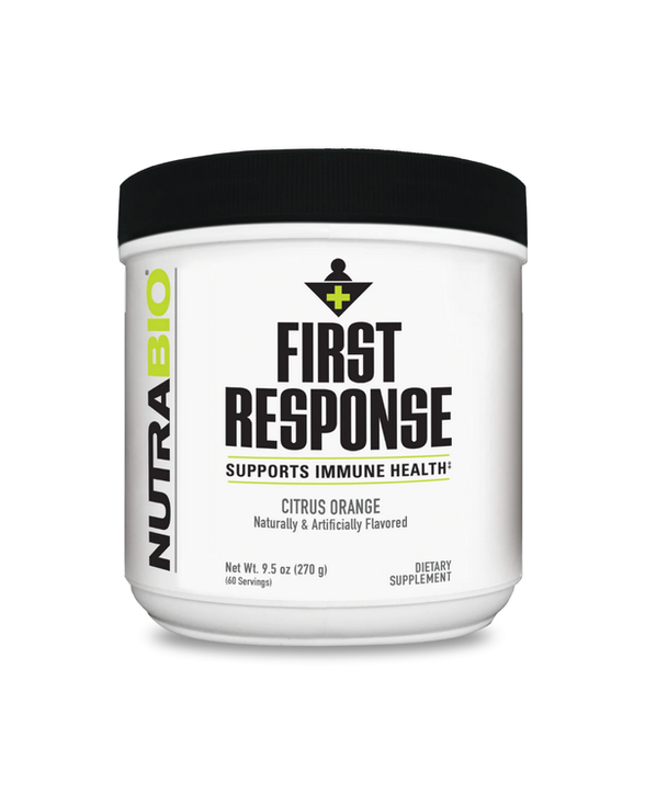 First Response supports immune function with a strategic blend of vitamins, minerals, and botanicals. NutraBio ensures transparency and therapeutic dosing, making it a reliable wellness tool for athletes and individuals prioritizing resilience and recovery.