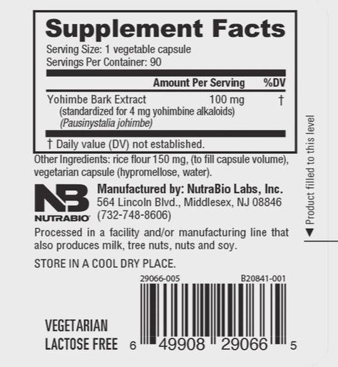 Ingredients (per capsule): Yohimbe Bark Extract standardized for Yohimbine Alkaloids.
